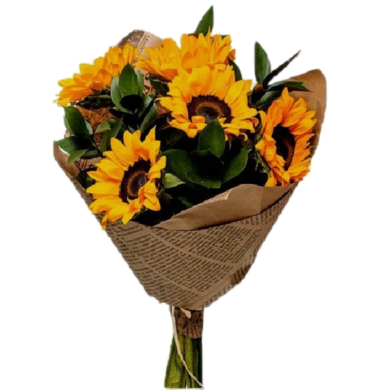 Букет из 5 подсолнухов в крафте